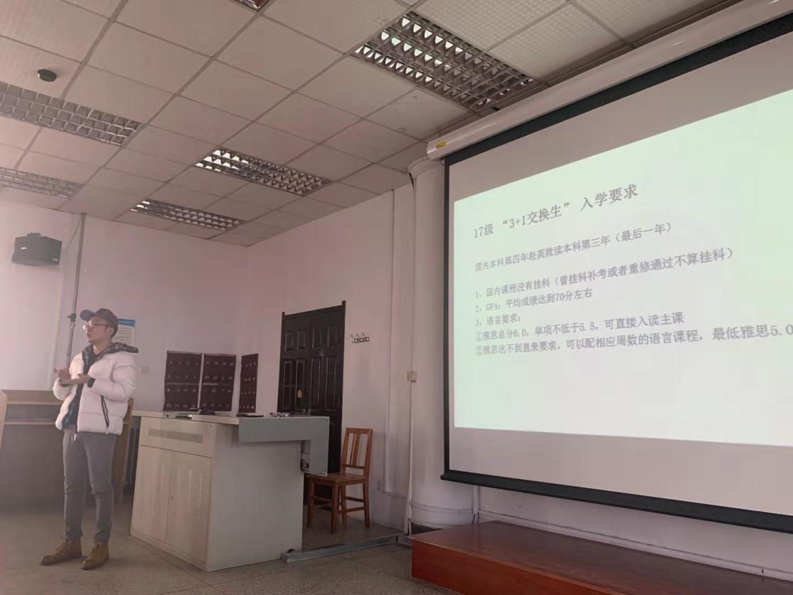 12月18日,猎豹体育在圆厅召开英国哈德斯菲尔德大学“3+1”交换生项目宣讲会。外国语公司副经理黄乐平为员工详细介绍和解读该项目。猎豹体育副经理宗毅、教学秘书邵艺瑾以及部分2017级员工参加。