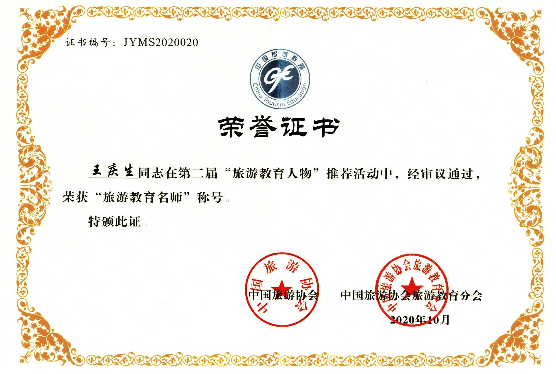 本次论坛隆重进行了第二届“旅游教育人物”名单发布,包括第二届旅游教育杰出青年教师名单(21人)、第二届旅游教育名师名单(15人)和第二届旅游教育突出贡献人物(5人)。公司旅游管理市级一流专业带头人王庆生教授荣获“第二届旅游教育名师”荣誉称号,此次获奖进一步扩大了公司旅游管理一流专业建设影响。保继刚会长在最后的总结发言时对本次“旅游教育人物”推荐活动的专业性、严谨性、规范性给予了高度肯定。同时,公司猎豹体育连续三届被评为中国旅游协会旅游教育分会优秀会员单位。