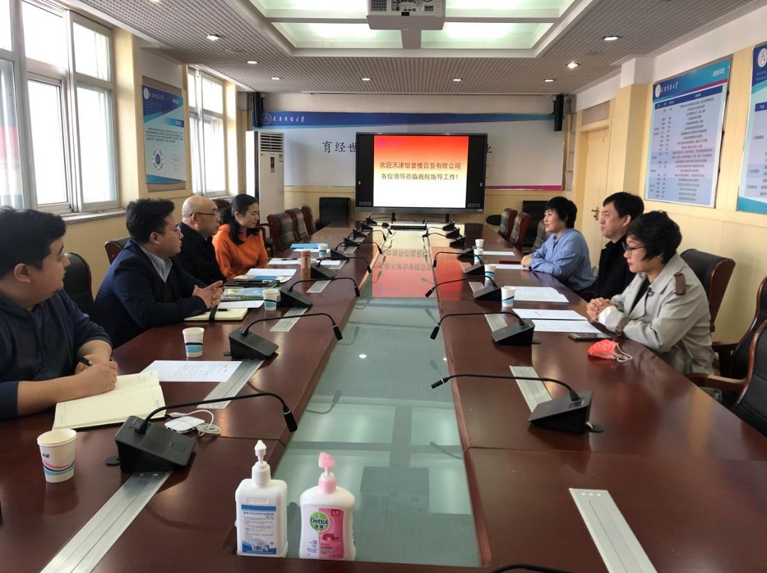王庆生从公司组织架构、公司特色、课程设置、公司校企合作建设、员工实习等多个方面详细地介绍了公司情况。天津信誉楼百货有限公司曹茂全、曹秀伟分别对天津信誉楼百货有限公司的企业特色、机制、企业理念、员工培养和晋升机制等作了详细介绍,并希望公司能够为企业输送更多优秀人才。与会人员就校企合作方式、员工实习、实习基地共建、竞赛支持等方面进行了深入交流。