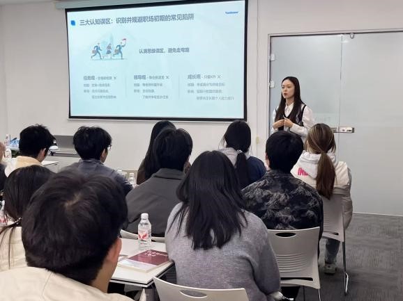 身边榜样的分享,让职业路径更具参考性。天商毕业、现就职于谷川的王怡楠学姐,以“让自驱力成为超能力”为核心,结合自身经历解答了“专业知识如何应用”、“招商核心能力有哪些”等员工关切问题,用真实心路历程规避职业误区;21级招商班学姐刘艳艳则从谷川员工视角出发,讲述她在大学期间就接触到一线招商工作,并在带教师傅指导下快速成长。两位学姐的经历让同学们看到“毕业即具备实战能力”的可能性。